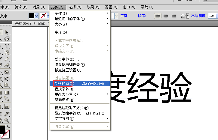 10、然后如图文字创建轮廓或者右击文字-创建轮廓。