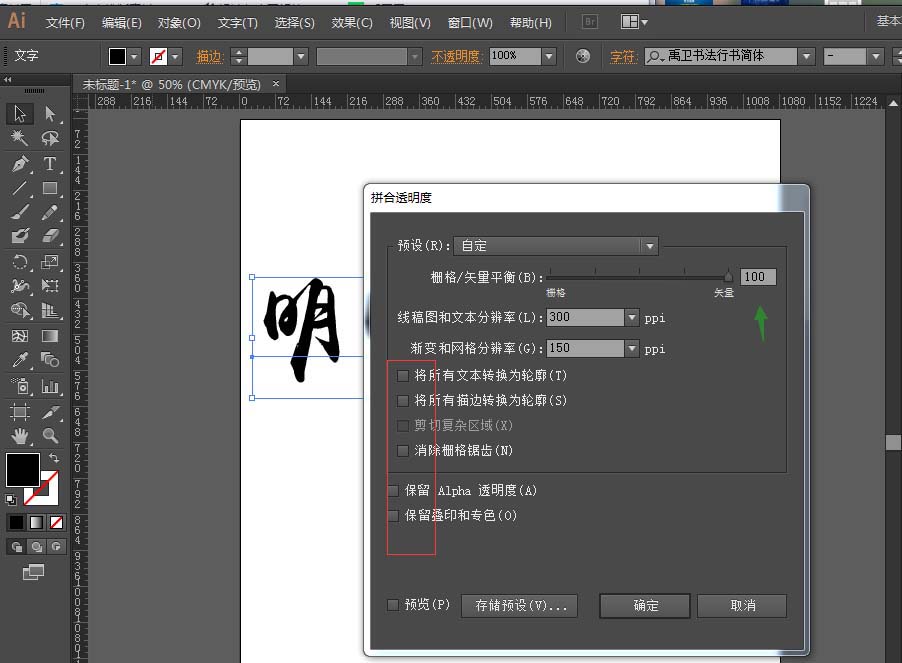 3、点击“对象”-“拼合透明度”,弹出窗口,进行如下设置,点击确定