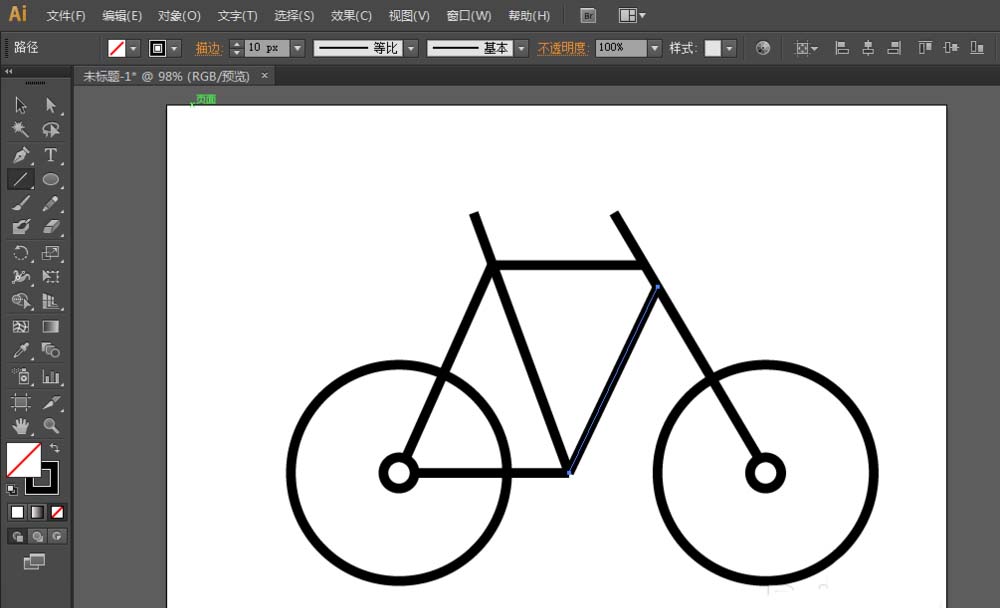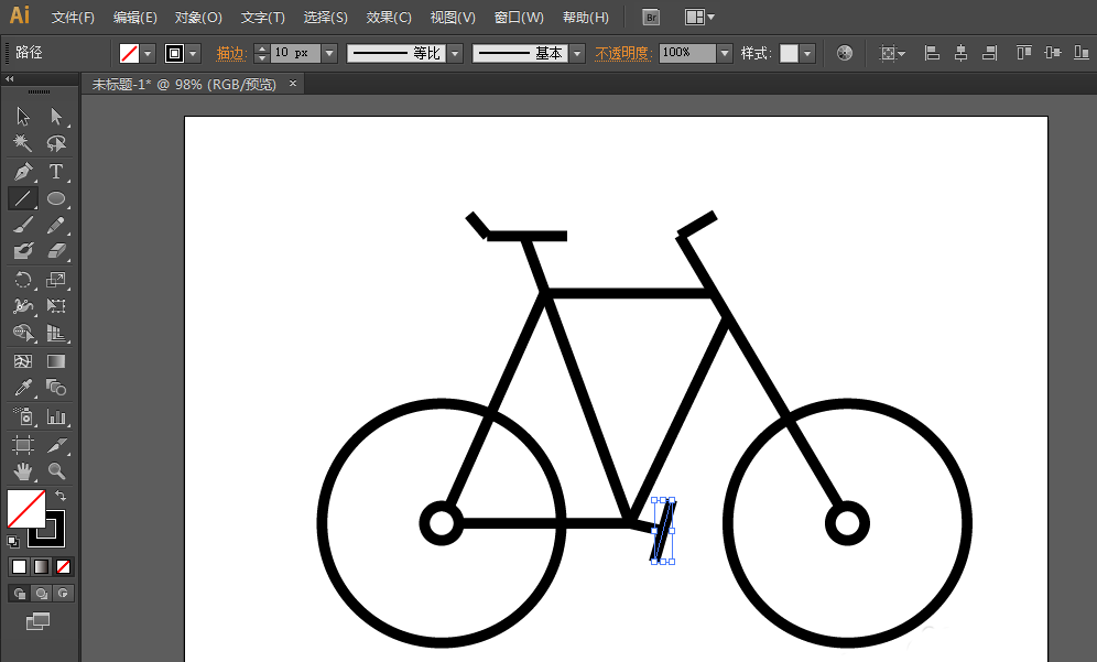 4、接着继续用直线工具绘制出车架,把手和车座。