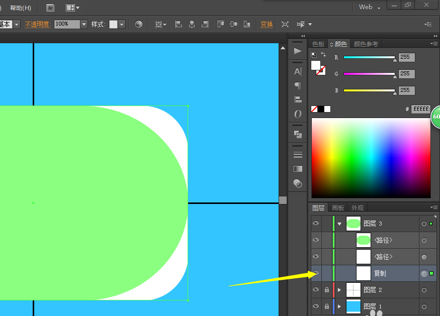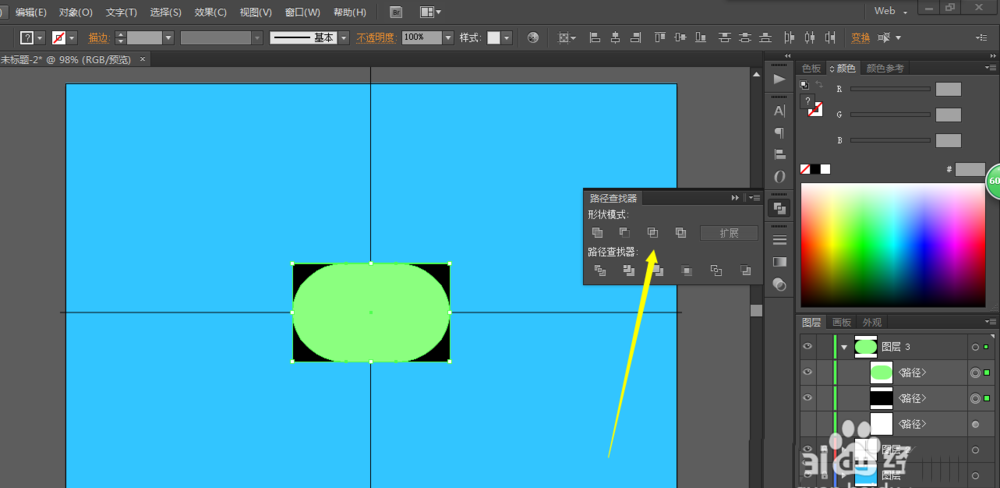 3、然后复制并且用路径查找器制作一个角弧度比较大的圆角。