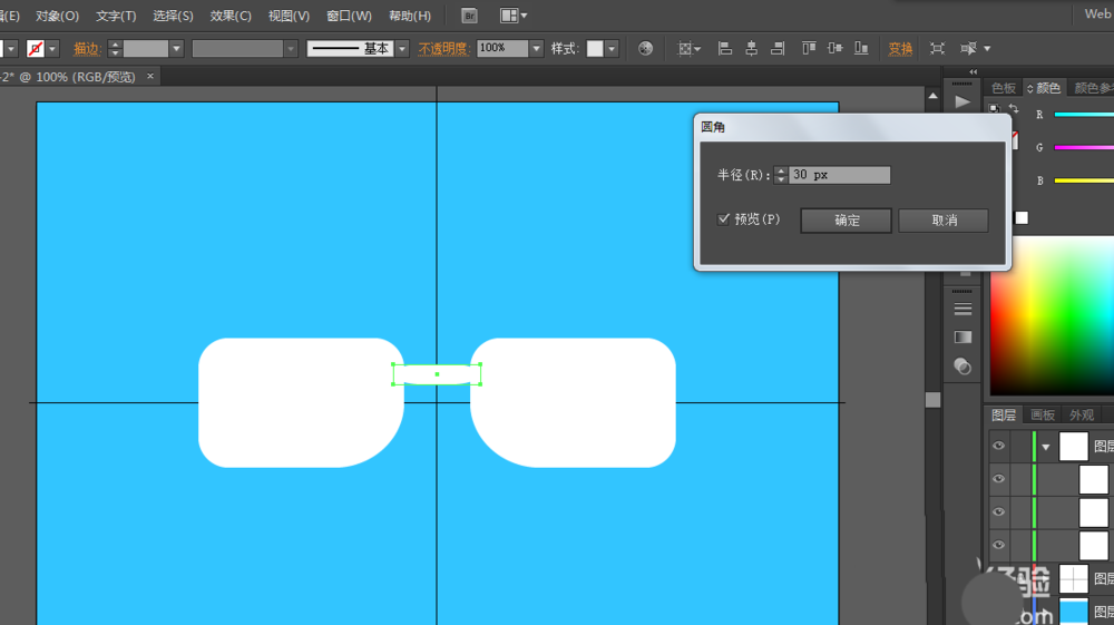 4、复制并且水平翻转一份,用矩形工具绘制长方形,并且改为圆角。