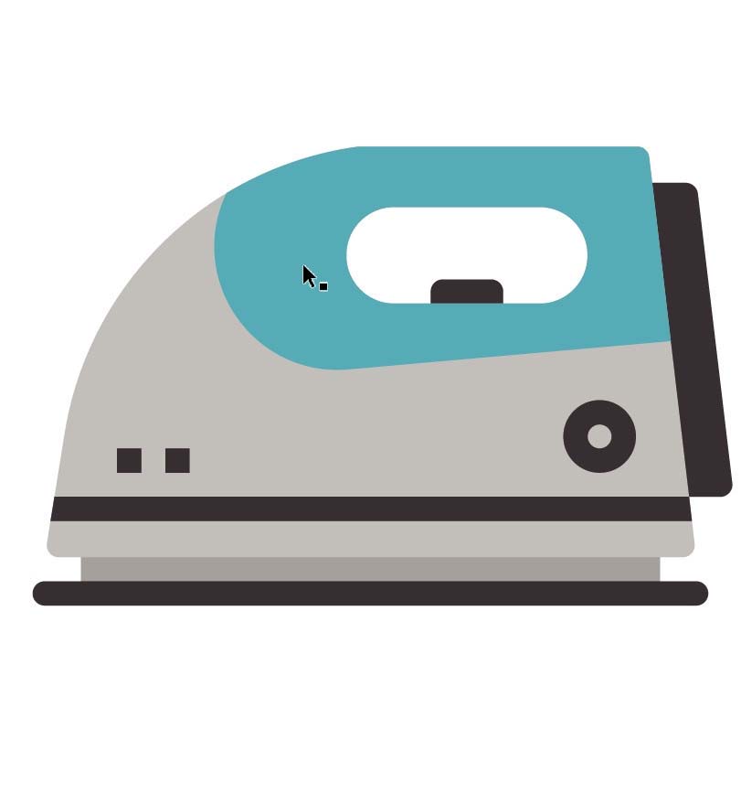 4、这一步,我们用灰黑色填充熨斗的右侧的结构件,熨斗的正央的圆形与方形的小零件。