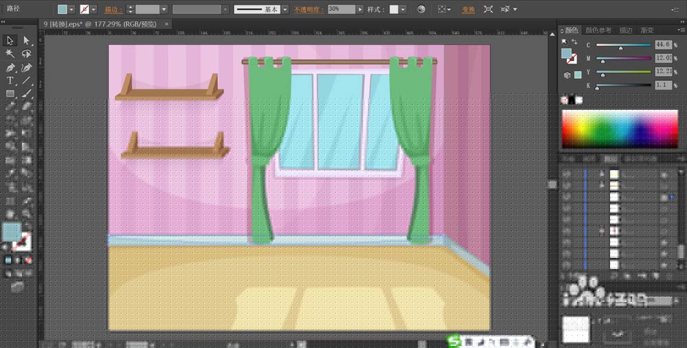 房间多一些温馨的感觉会让人更能够体会到家的美好,该怎么绘制房间的一角呢?今天,我们就来设计一款房间的场景,从中学习一下家的色彩搭配与使用,还有窗户、窗帘等多种不同房间元素的画法,下面我们就来看看详细的教程。