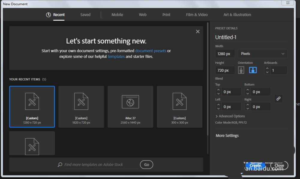 1、新建一个1280*720颜色模式RGB的文档。