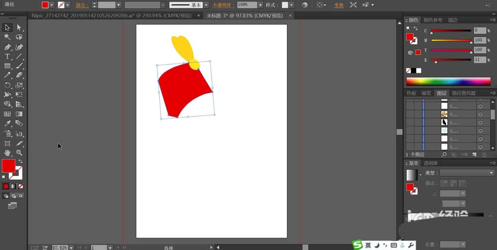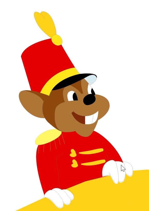 6、使用红色与黄色搭配填充老鼠的服饰的基本元素,让老鼠的服饰呈现出来。