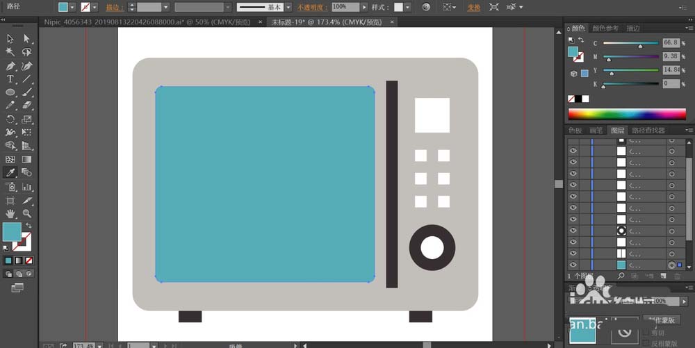 2、我们用灰色填充微波炉的机械,再用青色填充微波炉的门。