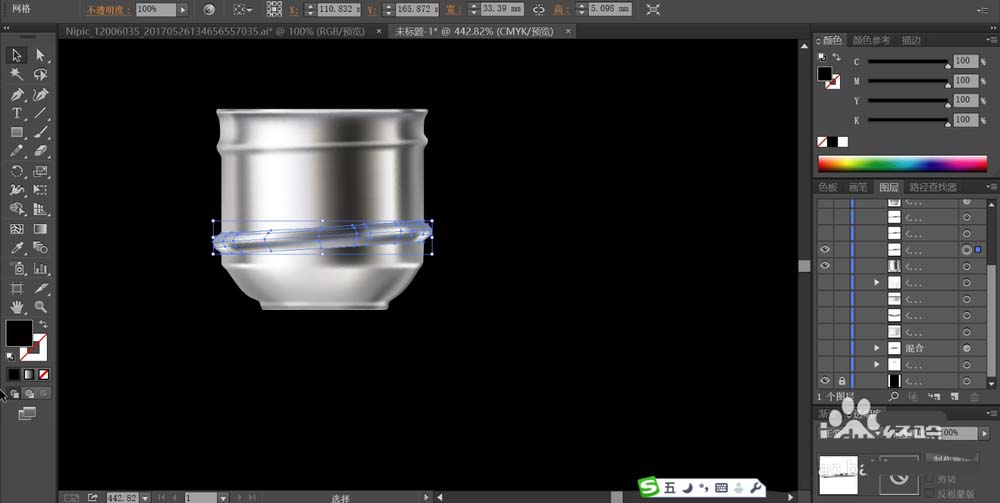 6、继续用钢笔画出底座与玻璃的连接结构件,我们用不同的灰白色的渐变填充。