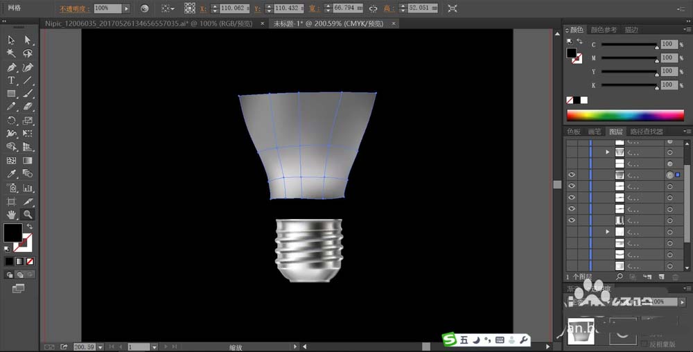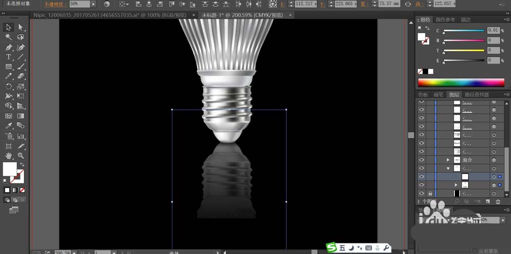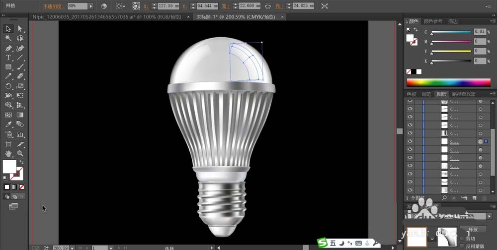 8、接着,我们复制一下灯泡的形状,再做垂直的对称,设置透明度为50%,完成这个LED灯泡产品设计。