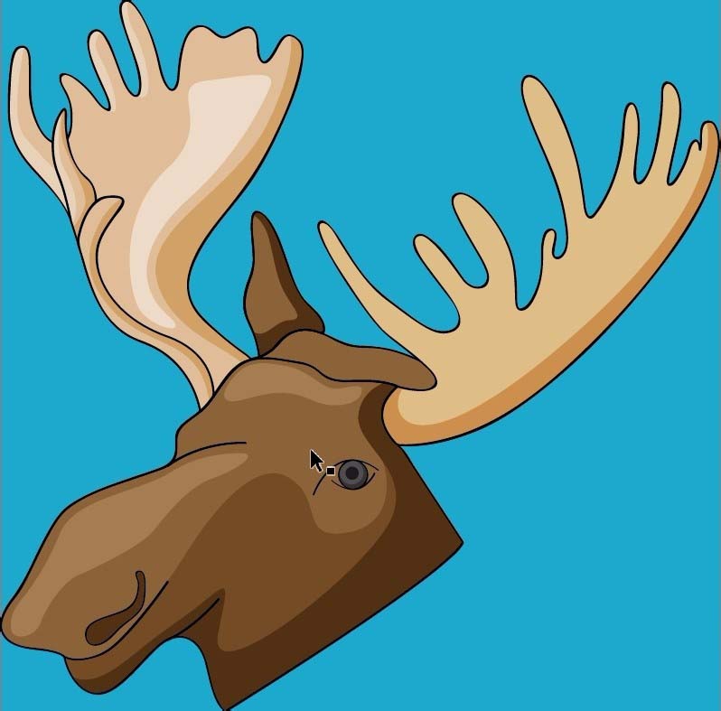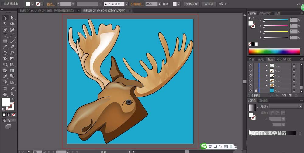 6、我们用网格工具给两只大大的鹿角做出渐变的效果,再加上一个蓝色的背景,完成鹿头手绘设计。