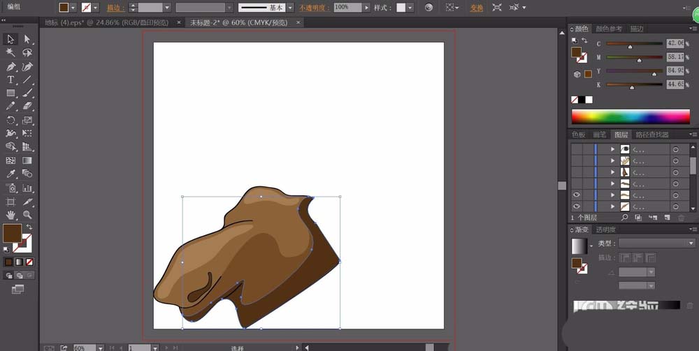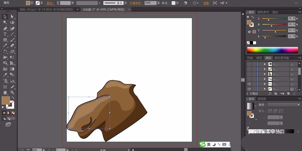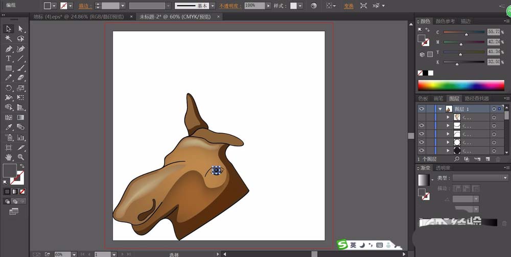 2、我们用暗棕色、棕灰色、亮棕色来搭配填充鹿头,让鹿头从上方往下色调慢慢变暗。