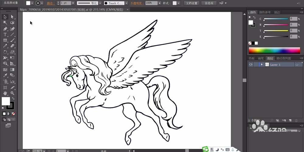 1、先用钢笔画出飞马的基本动作轮廓,重点元素:翅膀、脚的动作、尾巴、眼晴、身上的鬃毛。