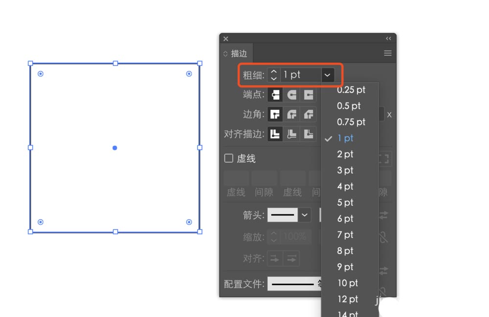 2、选中正方形,打开窗口—描边,修改矩形的描边粗细, 我这里给了10像素