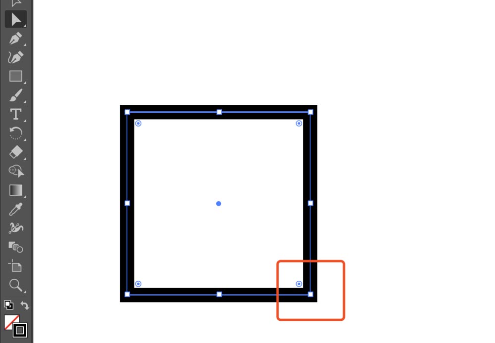 3、用直接选择工具选择正方形右下角的锚点,点击dele键删除