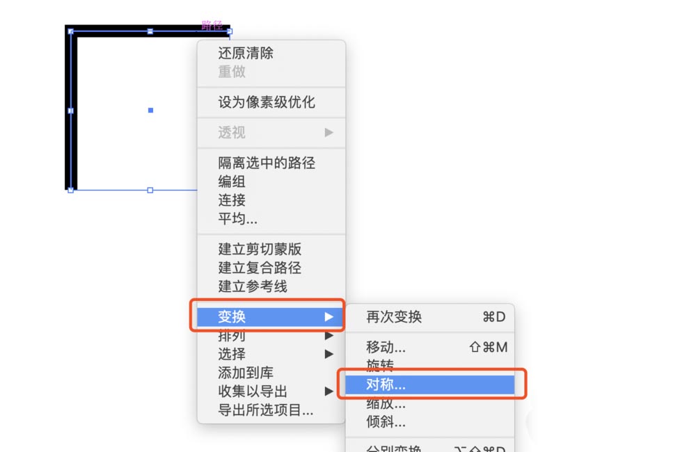 4、选中剩下的图案,鼠标右键点击变换—对称