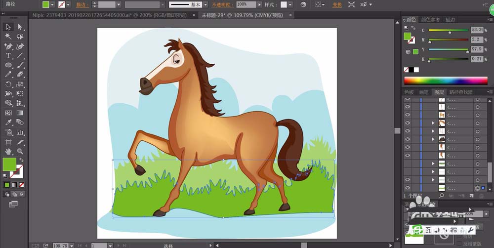 ai中想要绘制一匹在草原奔跑的骏马,该怎么绘制这个矢量插画图呢?下面我们就来画一画奔跑的小马,从中学习一下棕色的相似色的处理,还有马儿的身体不同细节元素的画法技巧,详细请看下文介绍。