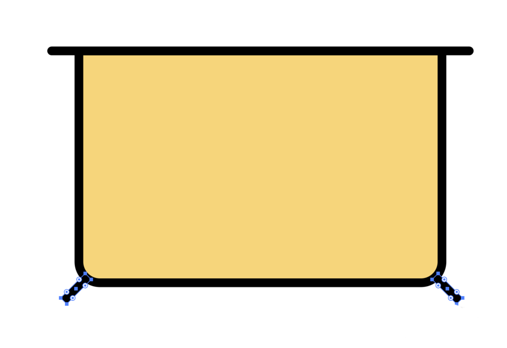 3、将两个旋转好的矩形放在大矩形的两个角上,做浴缸的腿,画一个比大矩形长的矩形,放在矩形上面,如下图所示