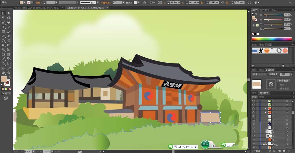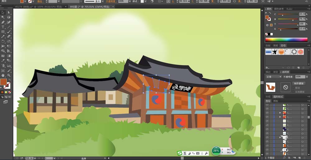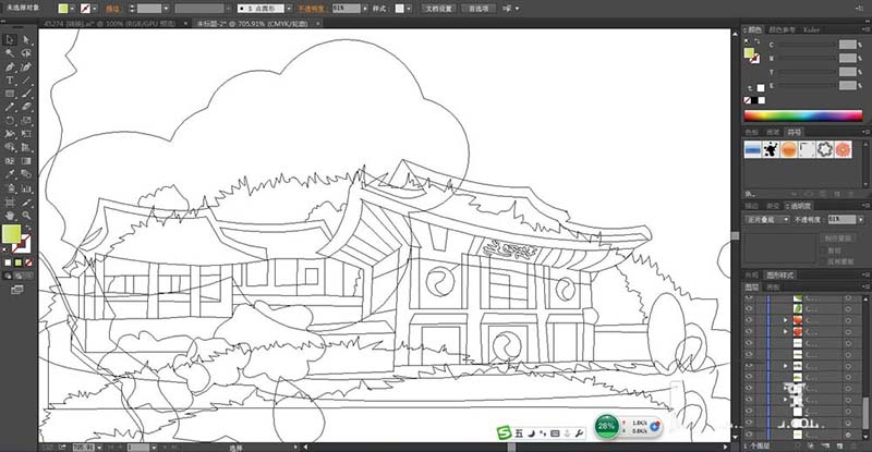 在远离城市的地方有着很多美妙的风景,想要使用ai绘制出来这种山野风光,该怎么绘制呢?下面我们就来看看ai绘制中国风背景图的过程,从中学习一下自然风光的画法技巧,再体会一下古式风格的楼宇的绘制技巧,详细请看下文介绍。