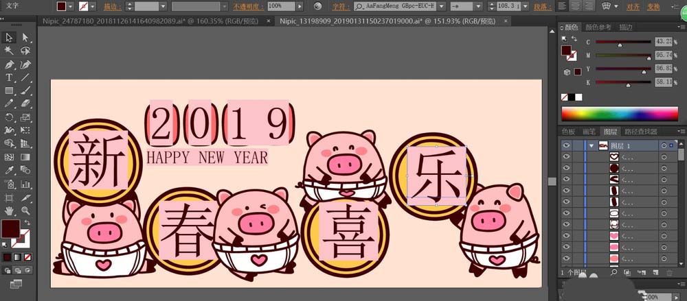 以上就是ai绘制2019年猪宝宝海报的教程,希望大家喜欢,请继续关注脚本之家。