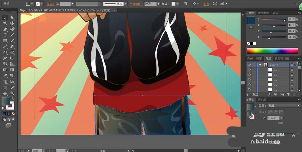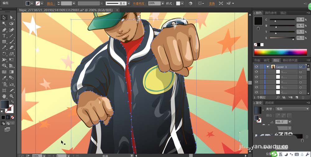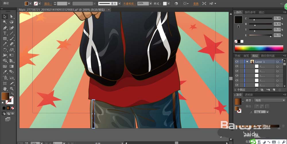 很多年轻人喜欢街舞,他们在外表上面也有着自己的特色,想要使用ai设计一幅宣传街舞的漫画绣工的插画,该怎么绘制呢?下面我们就来画一画街舞小子,从中学习一下耍酷风格的人物画法技巧,重点元素衣服、表情的处理方法,请看下文详细介绍。