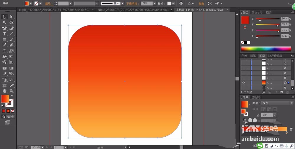 1、先用圆角矩形画出这个记事簿的基本轮廓路径,我们用火红色的渐变填充。
