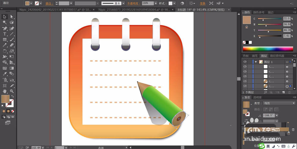 记事本工作中经常用的到,想要设计一款笔记本,该怎么设计呢?下面我们就来学一学记事簿与铅笔的画法技巧,还有阴影与暗光的设计技巧,另外木材质的呈现方法也是需要体会一下的。,详细的教程请看下文介绍。