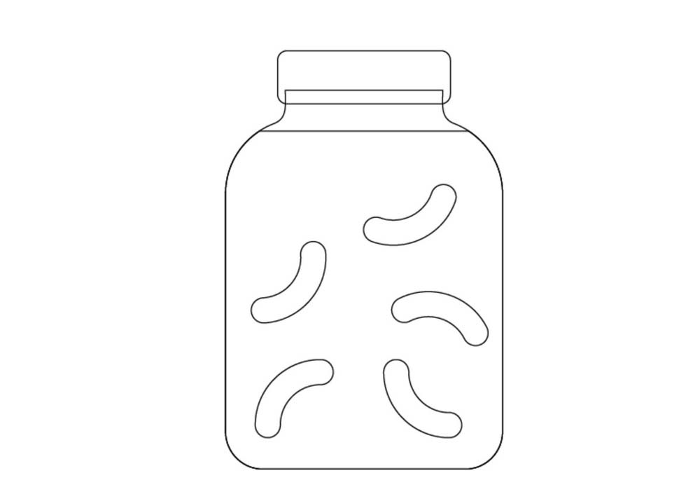 3、继续绘制完成瓶内的五条小虫子的形状路径。