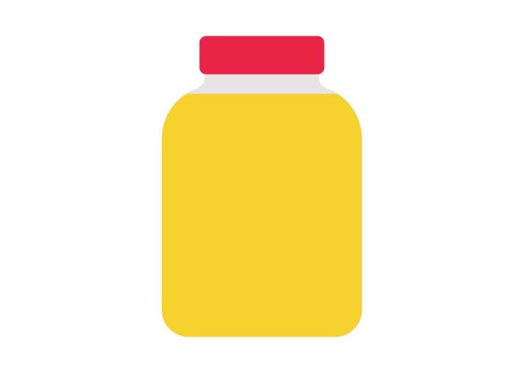 5、用淡黄色填充瓶身的路径,用红色填充瓶盖子。