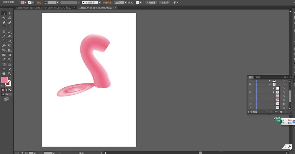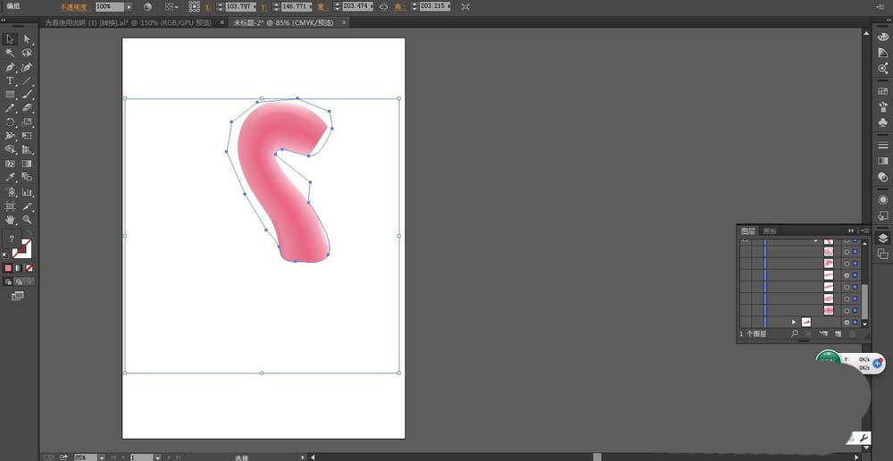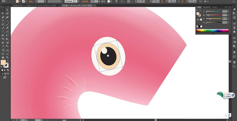 3、继续来画一画动物的身体路径,先画顶端的圆形区域,我们用两个不规则的圆形路径来呈现救生圈的顶端效果,同时使用一下网格工具,让粉红色的顶端呈现出来。