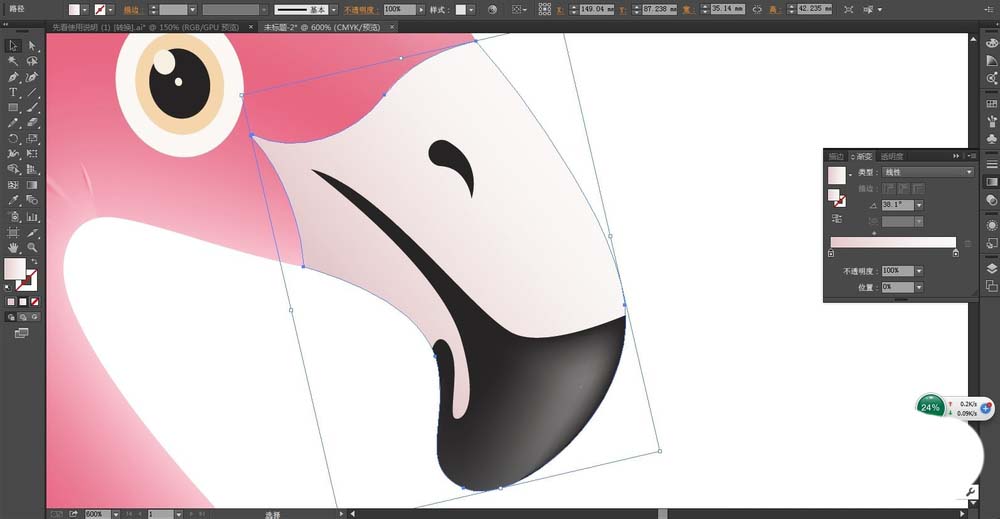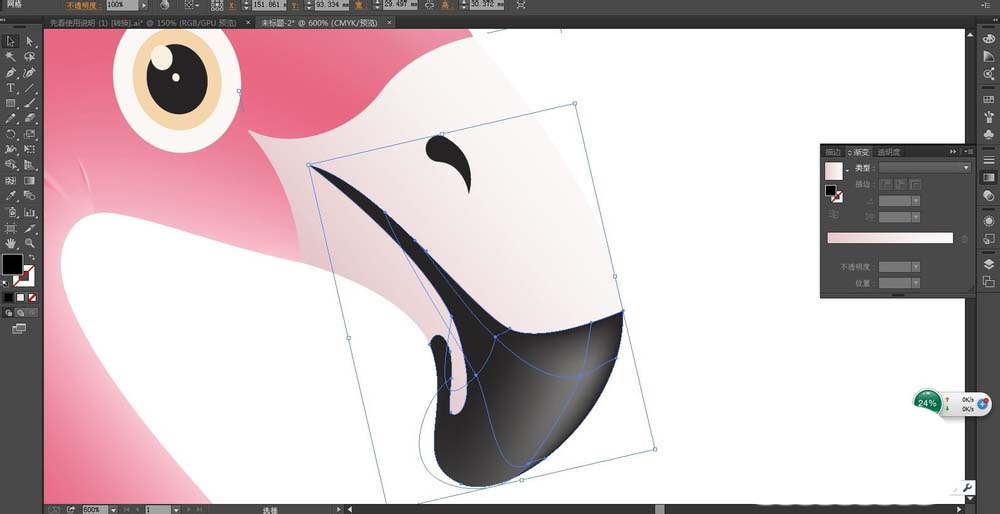 4、接着,我们再画出救生圈的主体部分路径与两边的一大一小的翅膀路径,分别用网格工具做出粉红色的渐变效果。