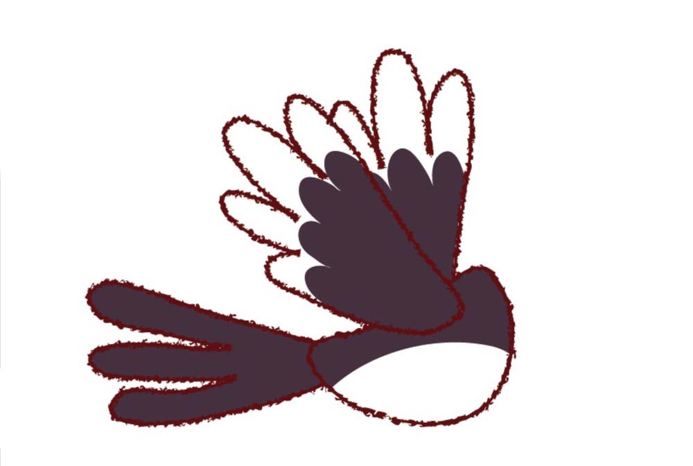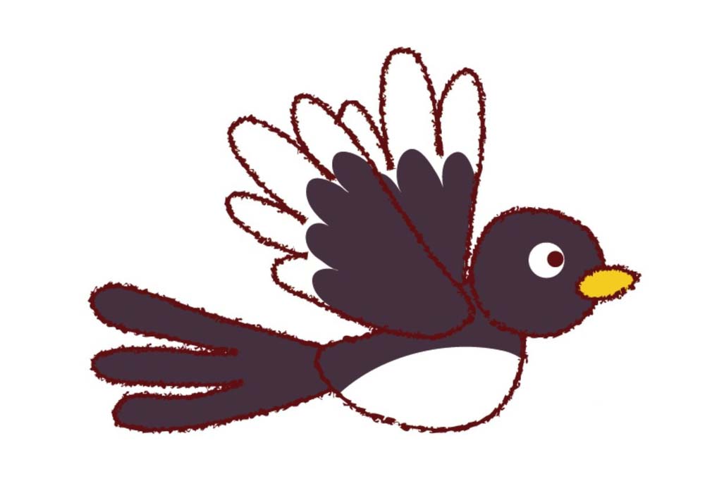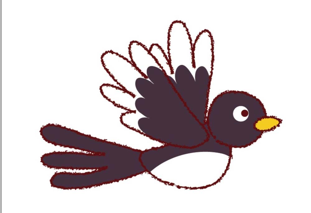 4、用藏青色填充小鸟的尾巴主体,用暗红色给翅膀进行描边。