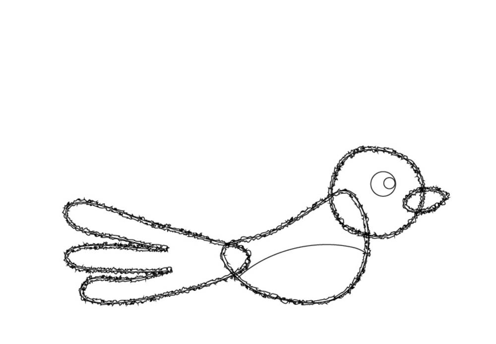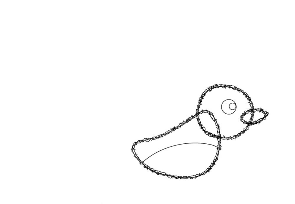 1、用曲线勾勒出小鸟的头部、身体、眼晴、嘴巴等基本的路径。
