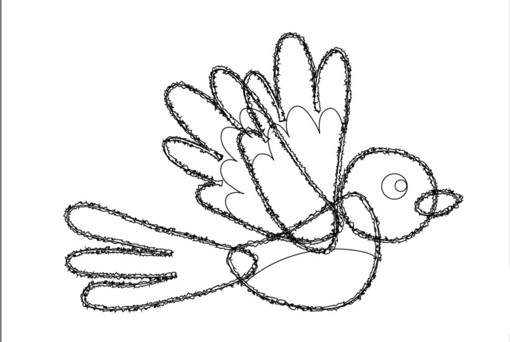 3、继续绘制出小鸟的一只翅膀的路径,复制一下成为另外的一只翅膀。让两只小鸟成为高高飞翔的状态。