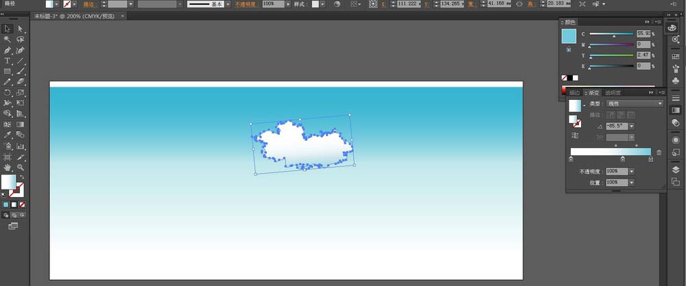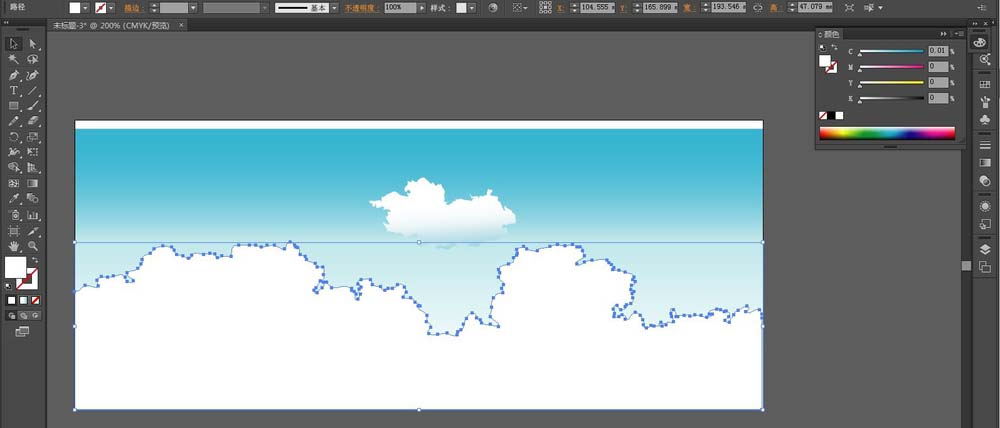 2、用钢笔画出白云的轮廓,我们用淡蓝色的渐变填充这个路径,让白色在上方,蓝色在下方。