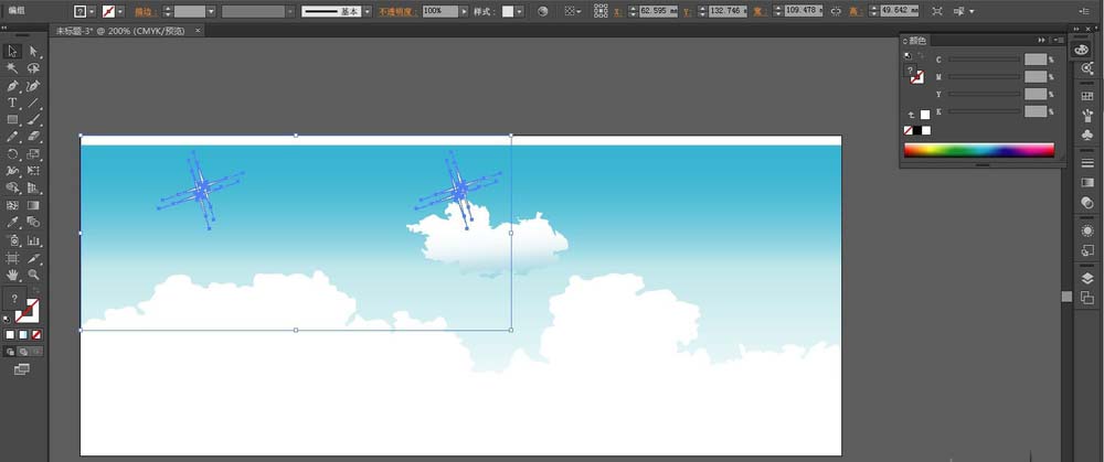 4、使用矢量工具在画面上画出很多星星的路径,我们用白色填充,把这些星星放到蓝色区域作为点缀。