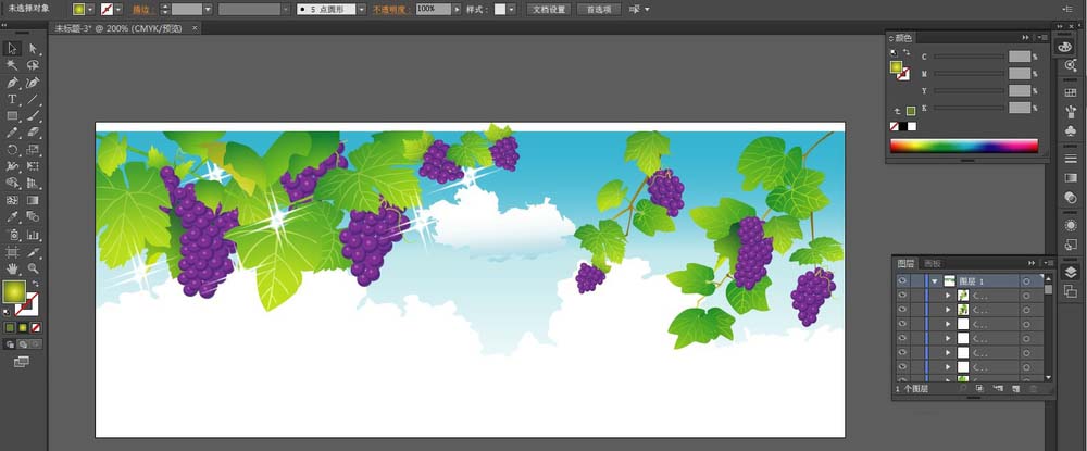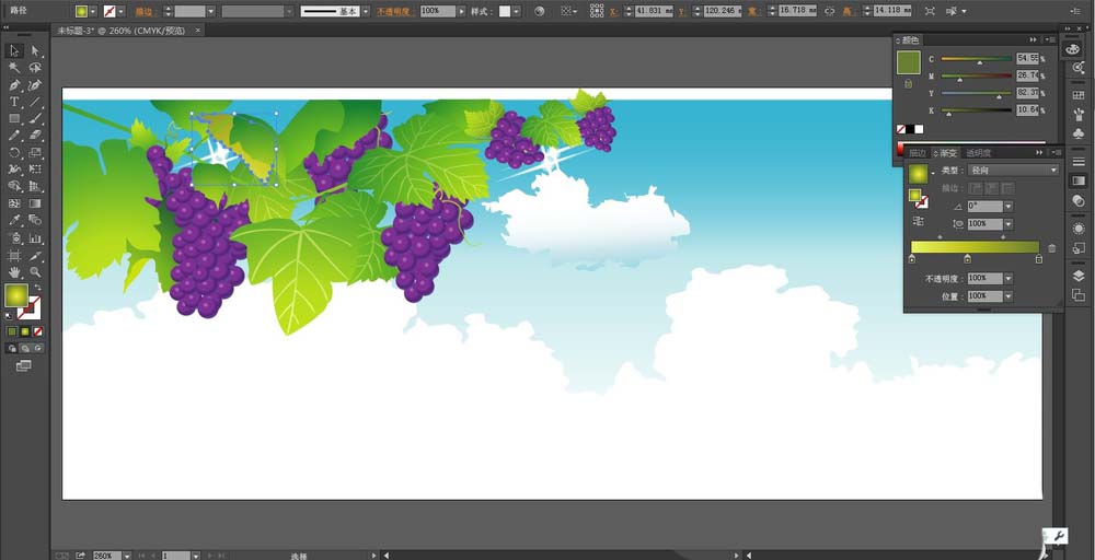 葡萄是夏天的一种美味的食物,今天,我们就来画一画这个葡萄架,从中学习一下渐变工具设置球体的方法,还有绿叶、蓝天、白云的画法技巧很简单,主要使用ai软件来绘制,下面我们就来看看详细的教程。