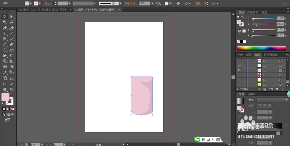 1、我们先用矩形画出这个彩烛的正面路径,还有右侧的暗区的路径,我们分别填充一个淡粉红色,再用暗粉色填充这个右侧的暗区路径。