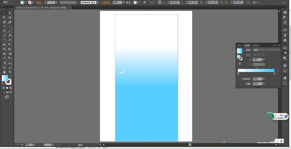 1、先根据需求的尺寸设置一个矩形的背景图片,我们用上白下蓝的渐变色填充这样的一个背景图片。