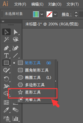 1、选择左侧工具栏中的星形工具属性