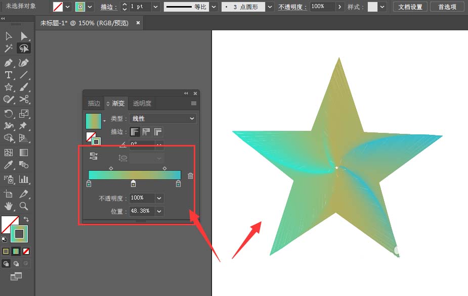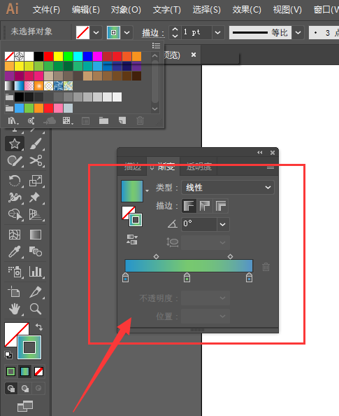 2、打开渐变属性,选择描边渐变,对线条颜色选择合适的颜色