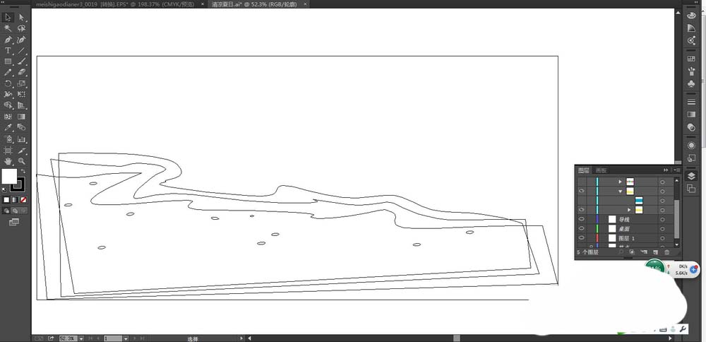 1、先画出一个大的海滩风景轮廓,主要有沙地与水流的元素轮廓路径。