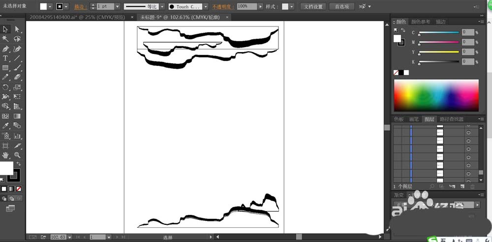 1、先用钢笔勾勒出天空上下方的巨大的云层的轮廓,我们把不同形状的云层分别绘制在图片的上方与下方。