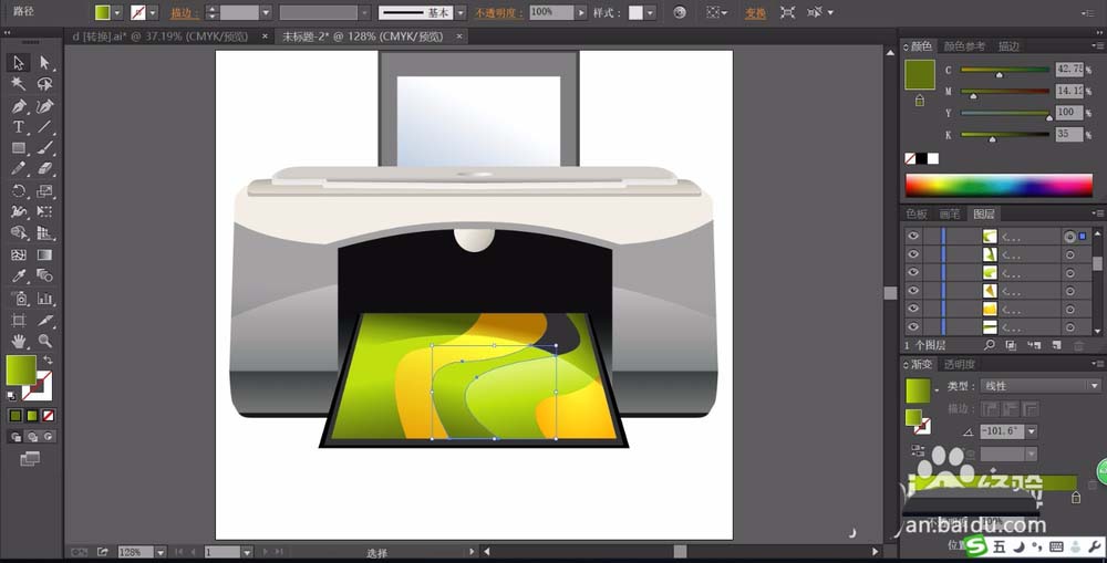 办公区域基本都有打印机,想要设计一款彩色打印机的宣传图,该怎么设计呢?下面我们就来看看的画法,中学习一下基本的电子产品的设计技巧,还有漂亮的渐变色彩的应用方法,体会用不同渐变色来呈现打印机表面材质的方法,请看下文详细介绍。