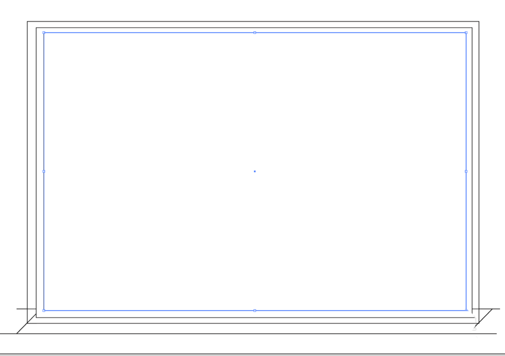 2、使用矩形工具画一个长方形,填充为无,再使用路径工具画出两个支撑部分的直线。再用路径工具画出前后支撑的两个横向的直线部分