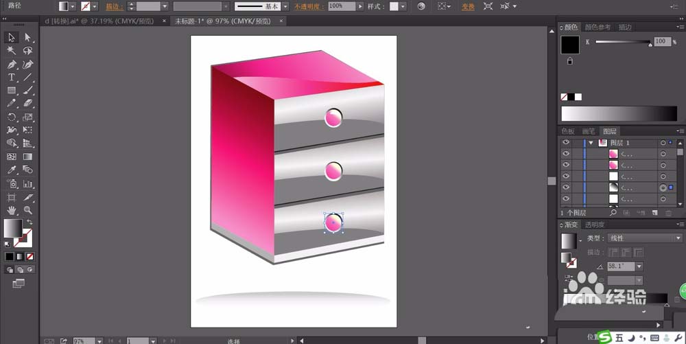 床头柜是家中常见的一种家具,我我们可以使用ai设计床头柜,下面我们就来学习一下粉红色与灰色之间的搭配方法,掌握渐变工具的使用技巧,详细请看下文介绍。