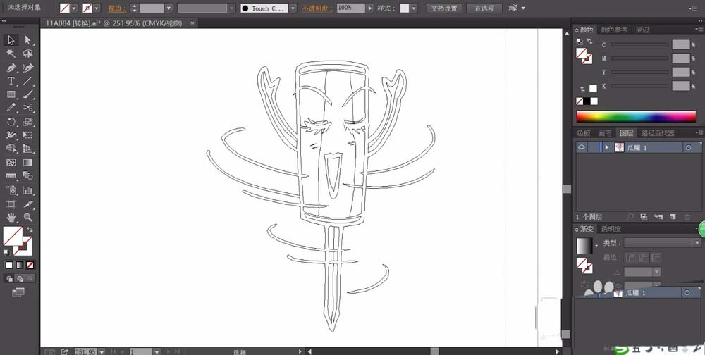 2、我们用黑色来描边这个工具的轮廓路径,风儿的路径稍微粗一些。