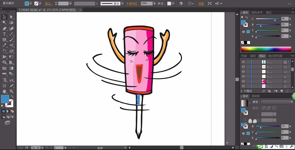 在动画片中,我们日常使用的工具也能跳舞,今天我们就来看看ai中让螺丝刀工具跳舞的方法,首先我们要画出她的基本身体轮廓,再画出她的动作,从而让一只美美的工具呈现在画面之上。我们从这个工具舞图片当中要学会粉红色与蓝色的搭配应用技巧,详细教程请看下文介绍。