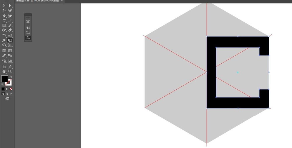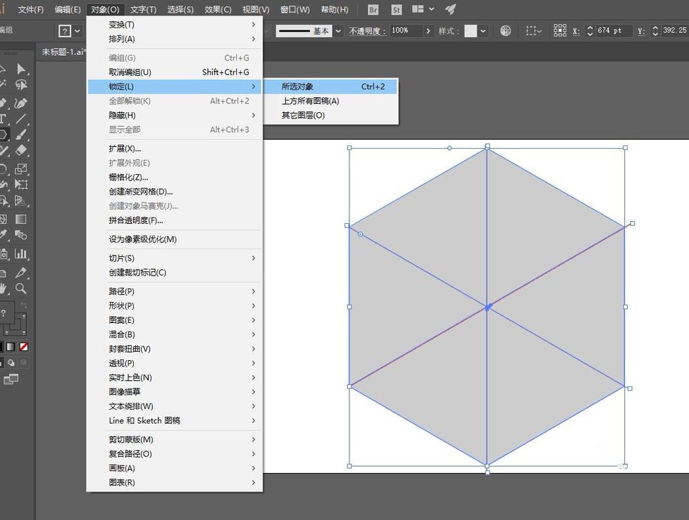 1、如图,绘制六边形和几根直线作为参考线,可将其锁定,以免影响接下来的绘制