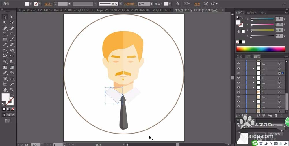 4、使用钢笔画出老师的领带路径,我们用灰黑色来填充。