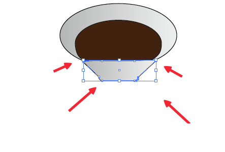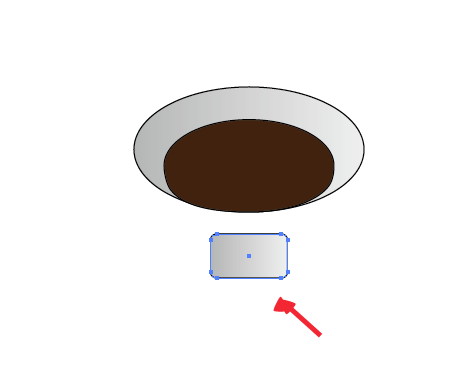 10、往上移动矩形,然后使用直接选择工具点击两侧的锚点往外移动,和椭圆边沿相接,底部角上的锚点稍微往上移动,形成底部形状。