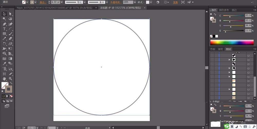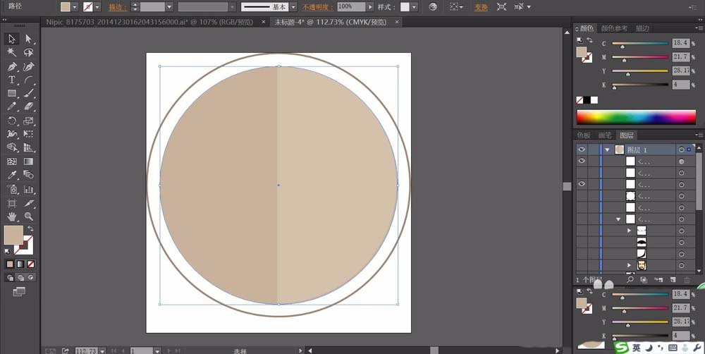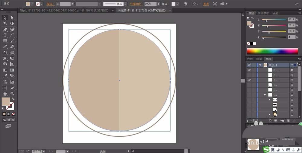 1、先用圆形画出整个图片的背景,我们用棕灰色进行描边。